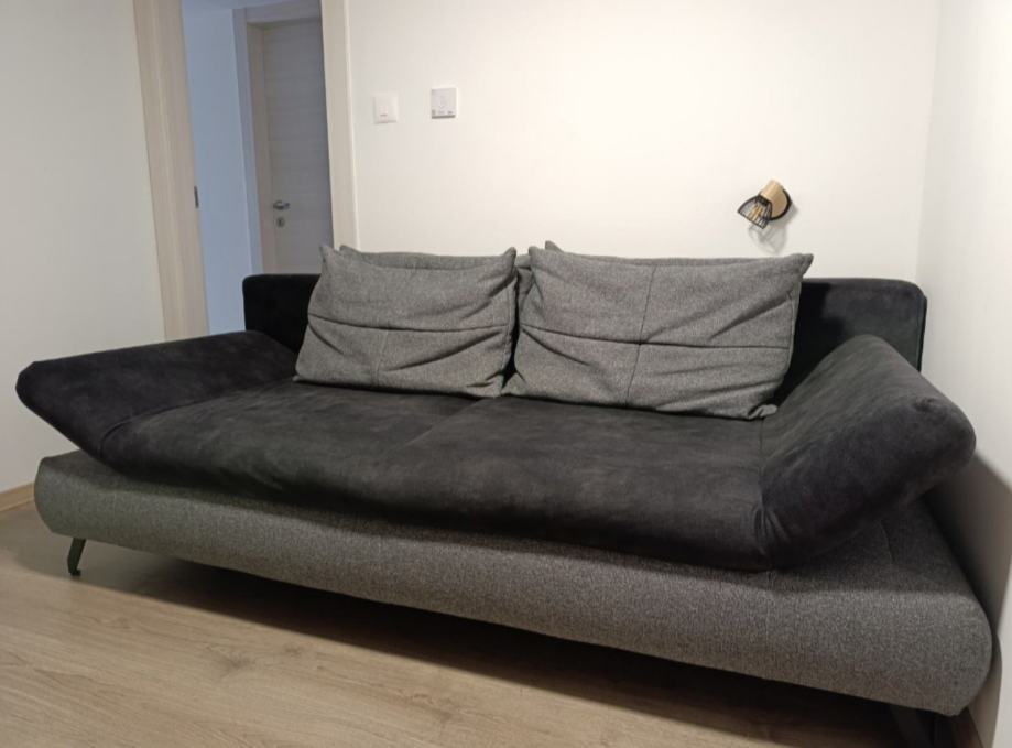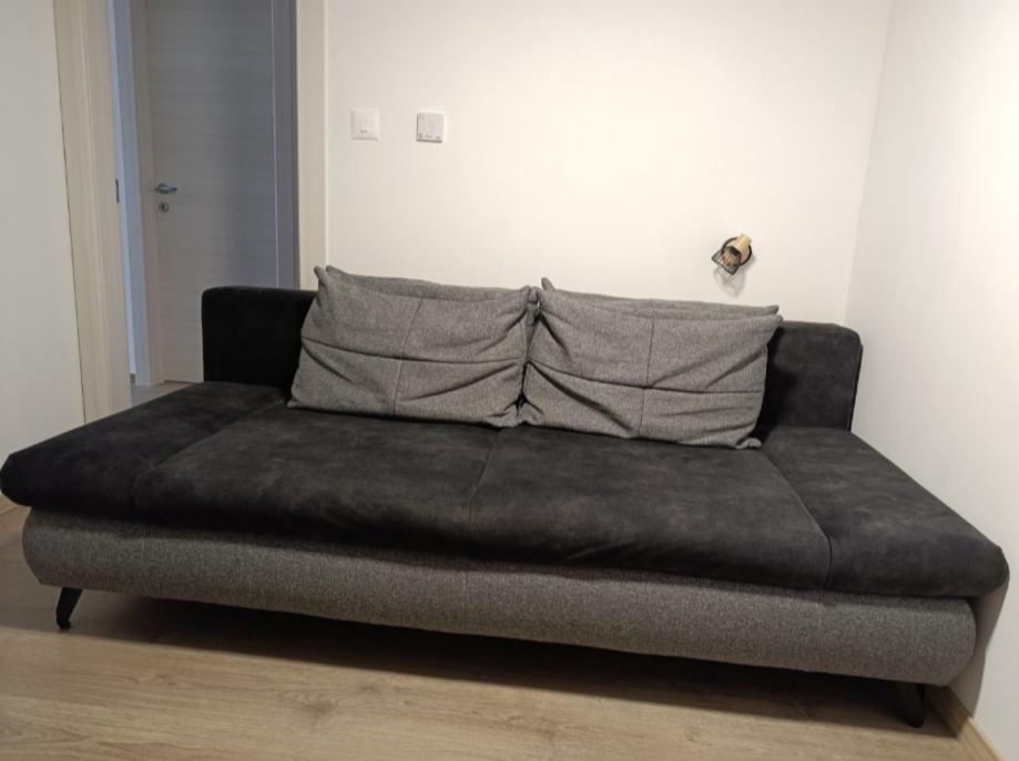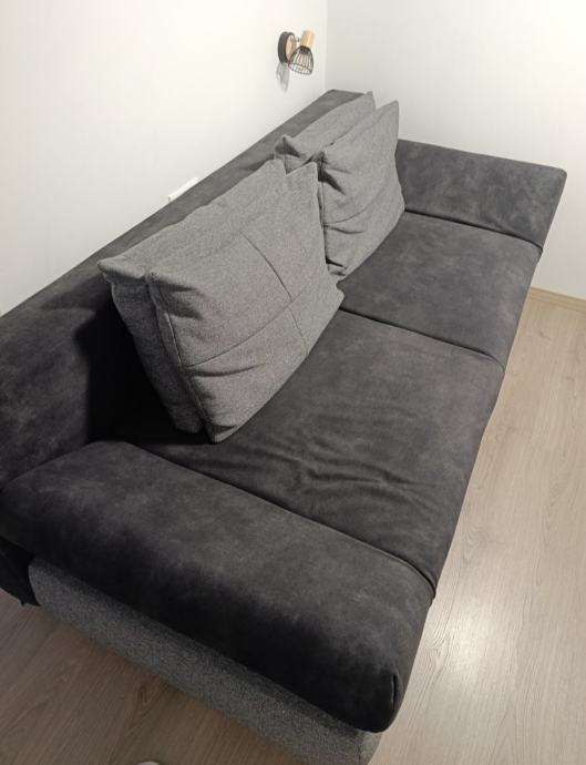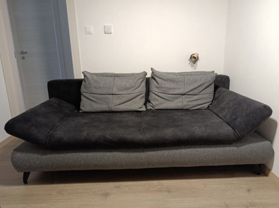 Boxspring sofa kupljena u Momaxu, očuvana i malo korištena, antracit tkanina, funkcija ležaja i kutija za posteljinu. Dimenzije Š/V/D 206/87/96. Cijena nove bila je 662e.