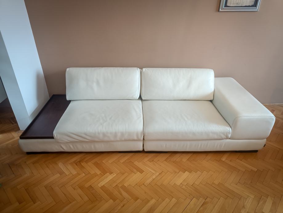 Furninova model Cartago, kožni, modularan kauč sa podloškom za čaše ili daljinski upravljač u odličnom stanju.