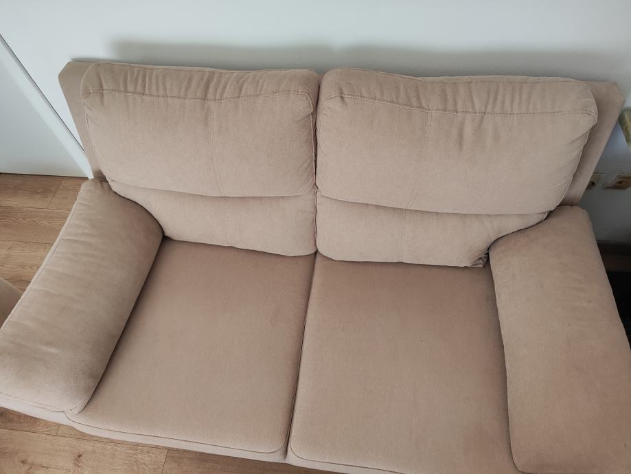 Komplet trosjeda, dvosjeda i fotelje očuvan.Trosjed se razvlači u krevet. Dvosjed ima spremnik.Standardnih dimenzija. Ako netko želi samo fotelju za 130€ nek se javi.