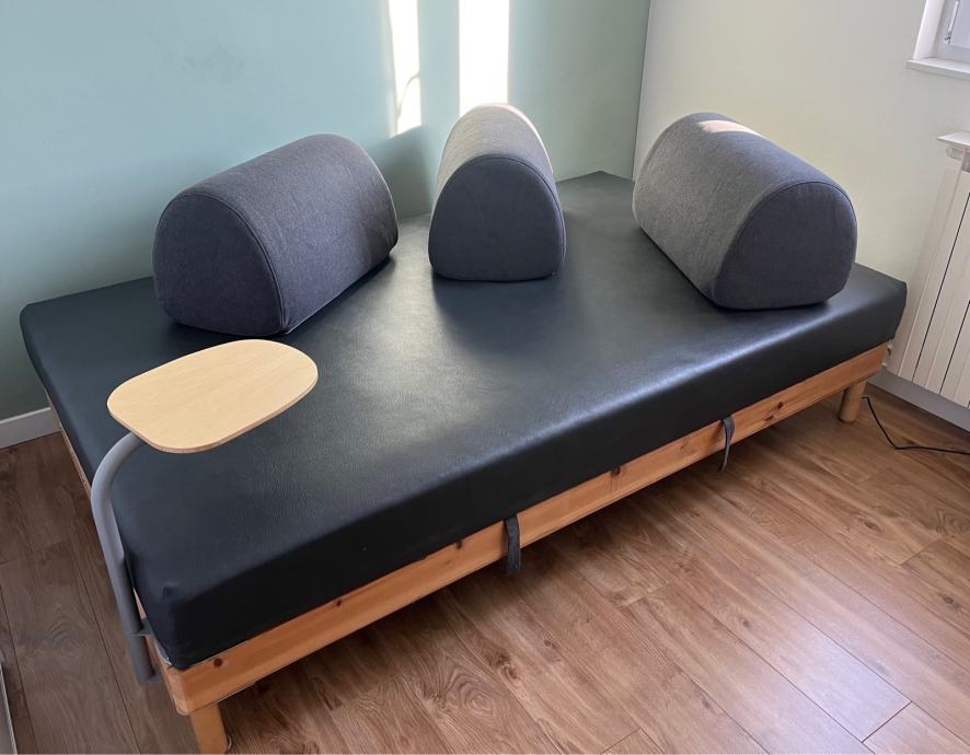 Prodajem Flottebo sofu/ležaj sive boje sa stolićem i 3 modularna jastuka. Dimenzije su 120x200, malo je korišten jer nam nije bas odgovarao u prostoru tako da je uglavnom samo stajao u pomoćnoj sobi. Jastuci imaju protukliznu podlogu, a navlake se kako skidaju i peru. Mi smo ga dodatno pretapecirali u malo izdržljiviju eko kožu jer nam je bilo praktično zbog održavanja tako da sada na takvoj podlozi jastuci još bolje drže i ne kližu. Tako da se sa ležaja navlaka ne može skinuti, ali se jednostavno održava brisanjem vlažnom krpom.