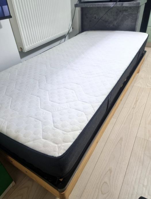 Sadrži dormeo madrac, podnicu, okvir, 2 jastuka i 2 kompleta presvlaka (zelena i siva boja).