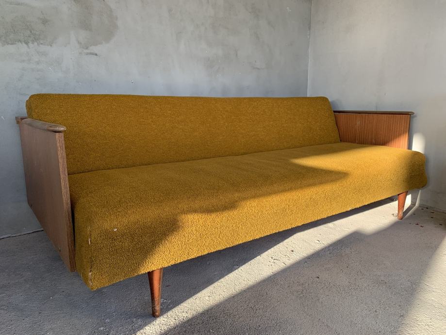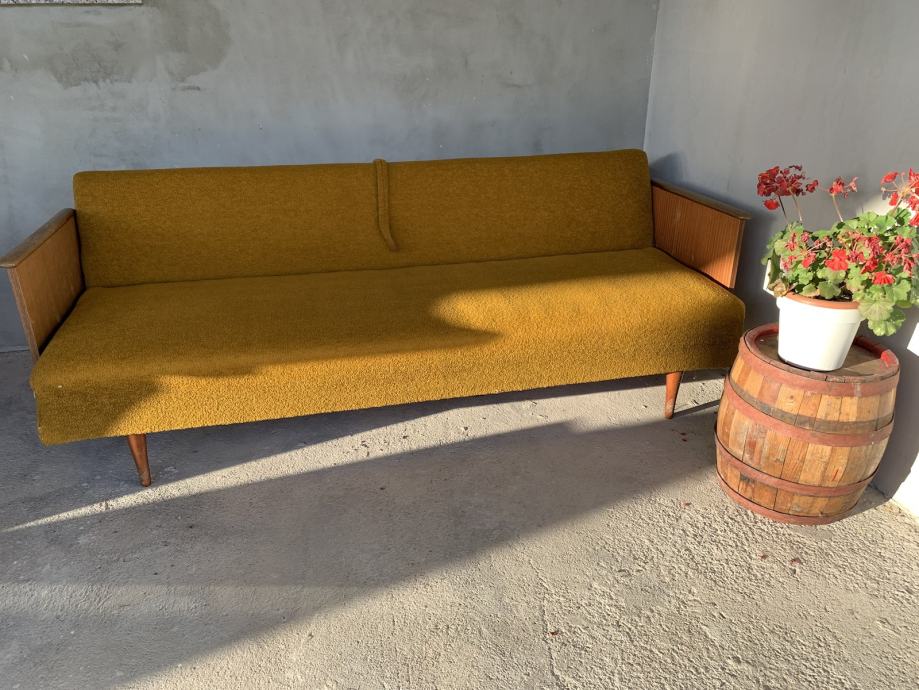 Kauč na razvlačenje za sjedenje i spavanje, prodajem. Kvalitetno je izrađen i očuvan, još uvijek upotrebljiv, star je oko 40-45 godina. Dimenzije 190x100 cm.