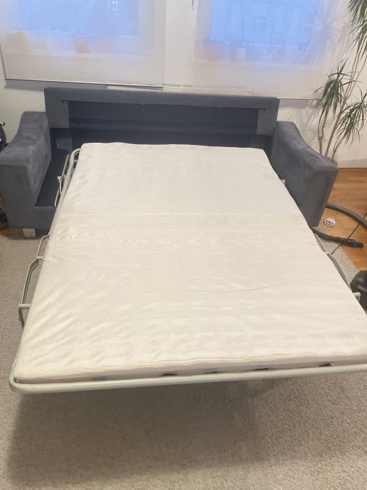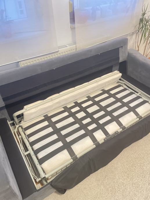 poliuretanska pjena, siva alcantara koža, čelicna konstrukcija, izvlacni lezaj za spavanje 190*140