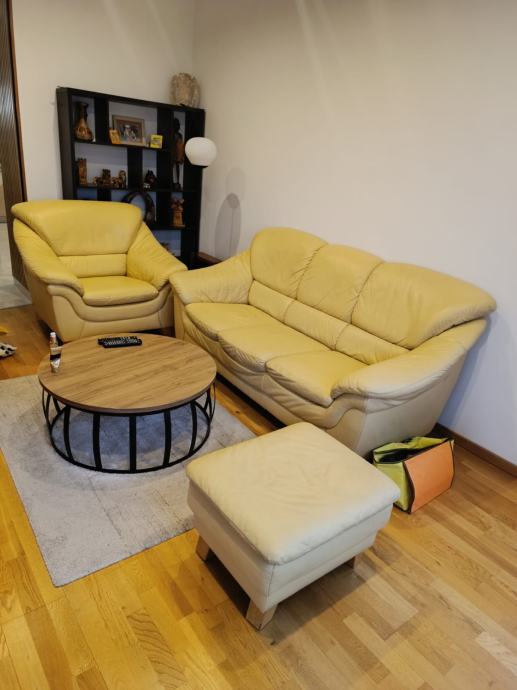 Prodajem fotelju trosjed i tamburin prava koža u dobrom stanju,kupljena u lesnine onda koštala 11700kn,prodaje se za 200 eura,bez zamijena samo pozivi bez sms maila itd