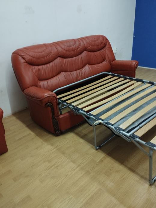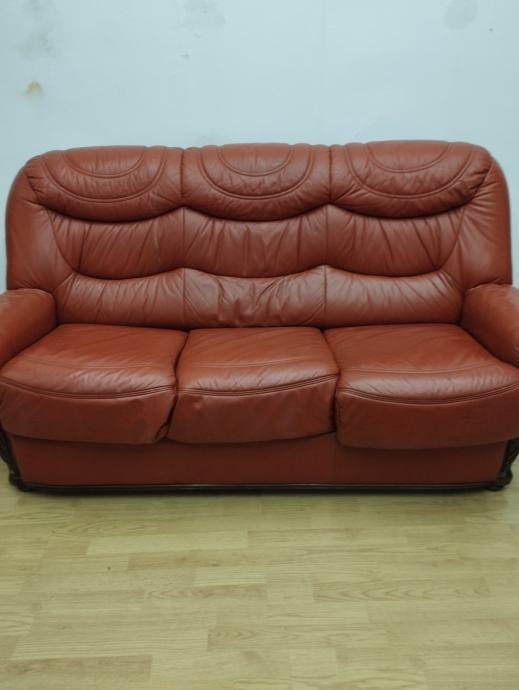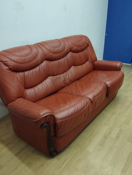 Garnitura je rađena od prirodne kože , udobna za sjedenje ili spavanje.Vrlo atraktivnog dizajna te se uklapa u svaki stambeni ili poslovni prostor te ga čini vrlo ekskluzivnim.Kožna garnitura nije nigdje oštećena ili potrgana, vrlo malo korištena
