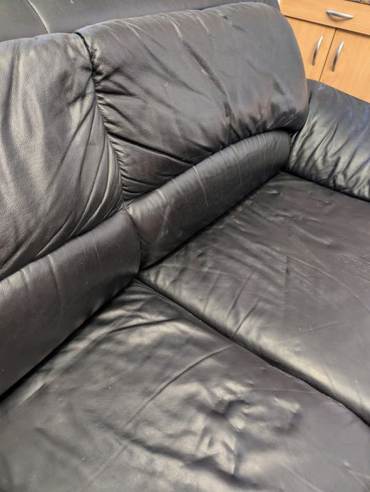 Trosjed u izvrsnom stanju, a dvosjed ima manje oštećenje na sjedećem dijelu.