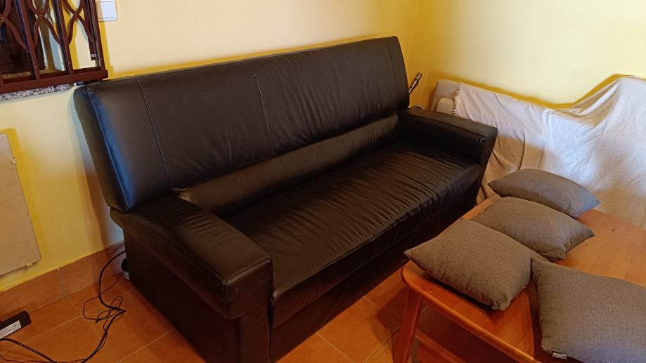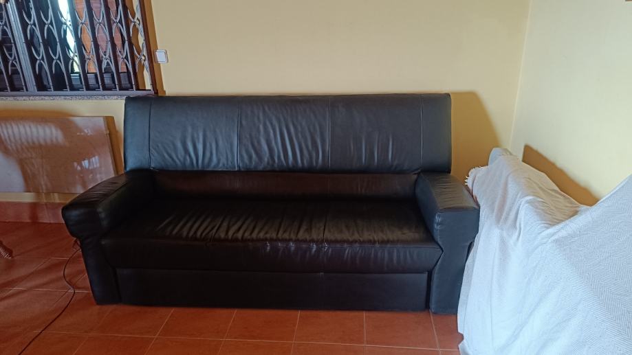 Prodajem kožni trosjed na razvlačenje u crnoj boji.