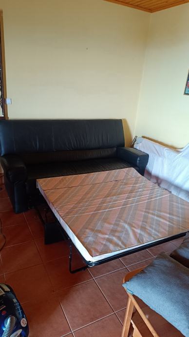 Kauč je vrlo malo korišten, bio je u vikendici i korišten povremeno, što se vidi po stanju — koža je očuvana, bez izlizivanja i oštećenja.