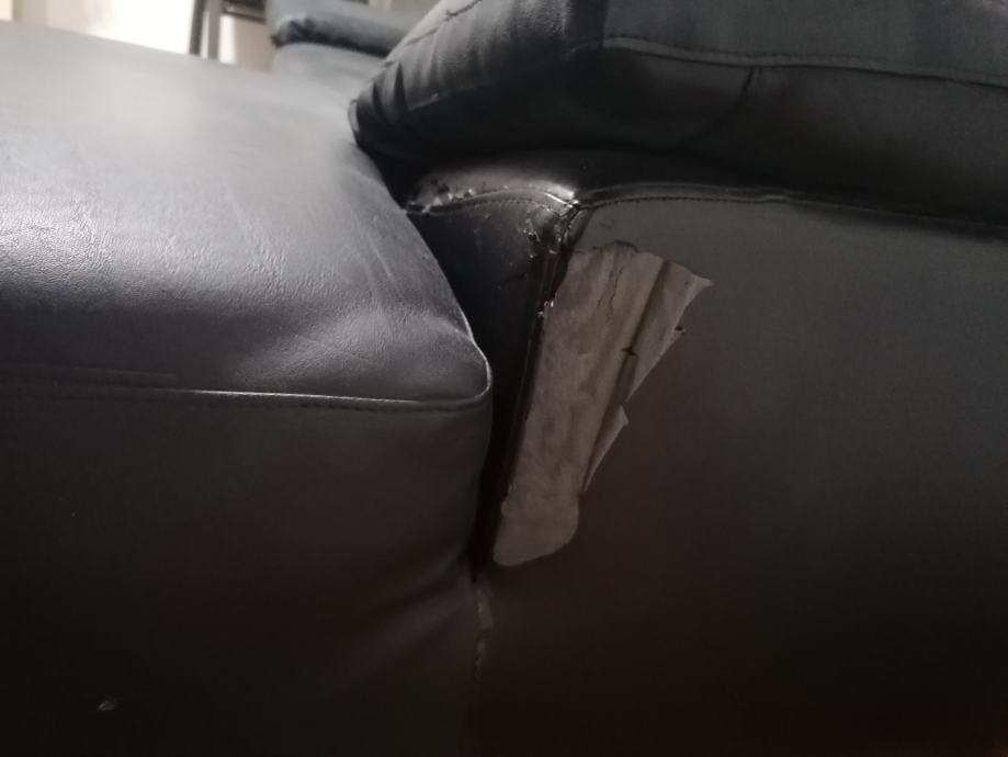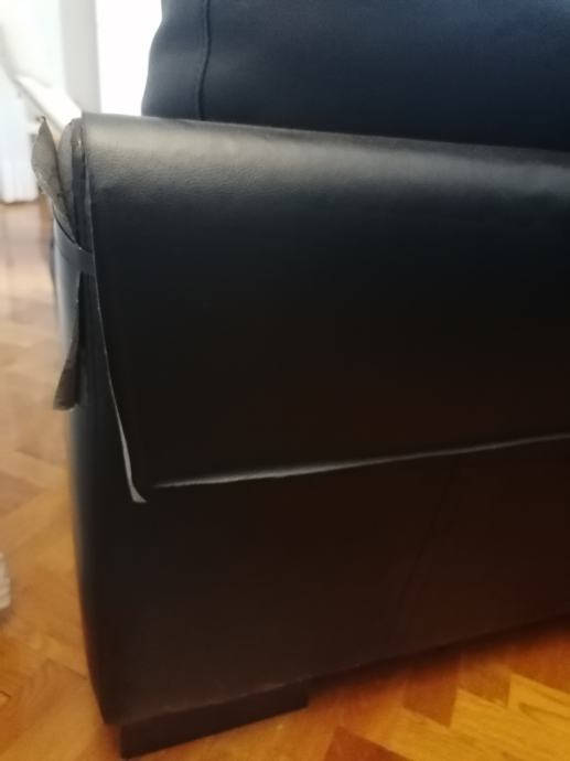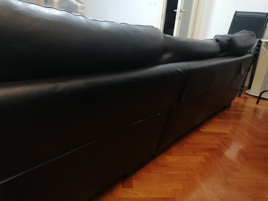 Prodajem kutnu garnituru od umjetne kože, sjedeć dio je presvučen novim kvalitetnijim materijalom, a sa stražnjih i bočnih strana se koža guli, na tim mjestima je zaljepljena tapeta imitacija kože (vidi se na slikama) .