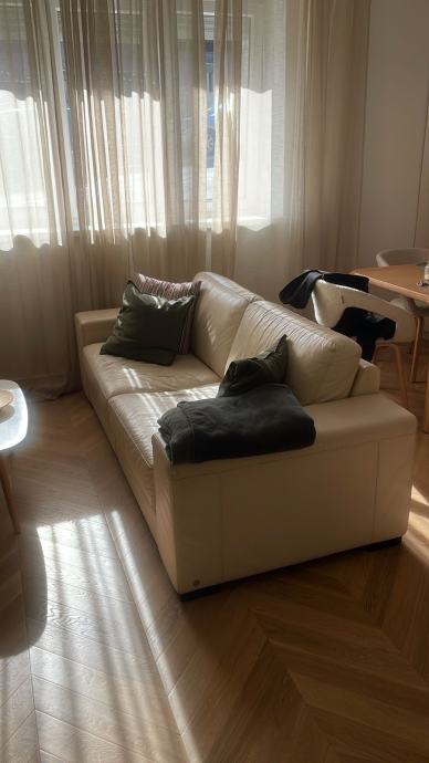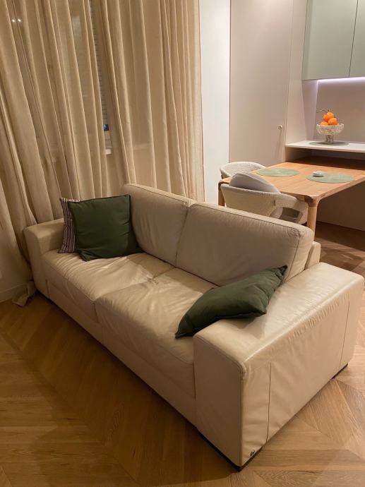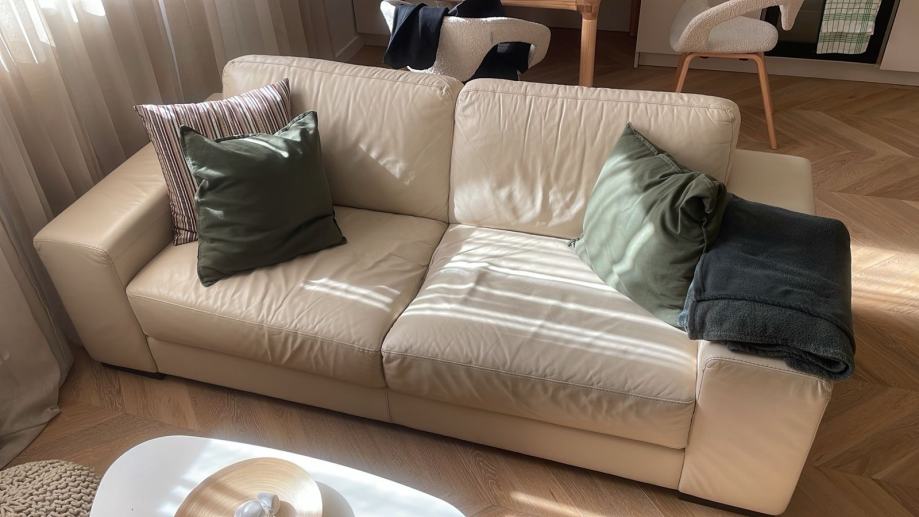 Prodajem Natuzzi kožni trosjed u bež boji. Trosjed je od kvalitetne kože, udoban i prostran, s čistim linijama i modernim dizajnom. Natuzzi je poznata talijanska marka koja se odlikuje kvalitetom izrade i trajnošću materijala. Trosjed se dobro uklapa u različite stilove interijera zahvaljujući neutralnoj boji.
