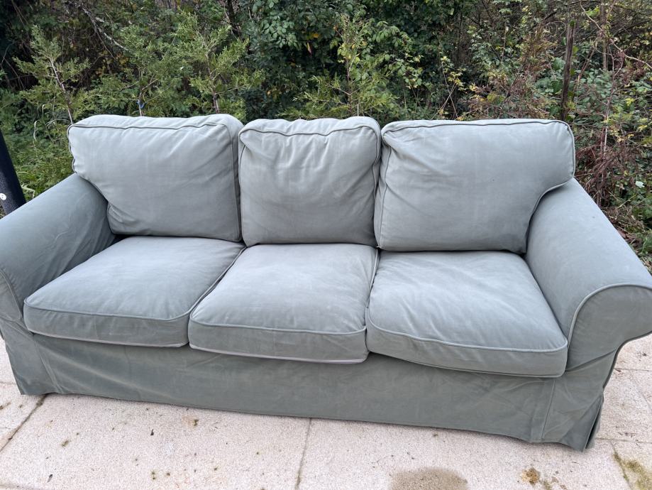 Nedavno novo kupljeni trosjed, boja mente, samo montiran, nekorišten, ne odgovara nam u prostoru, prodajem.