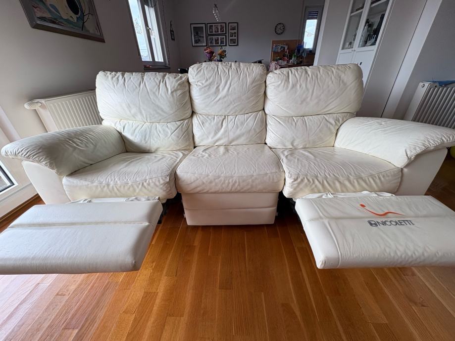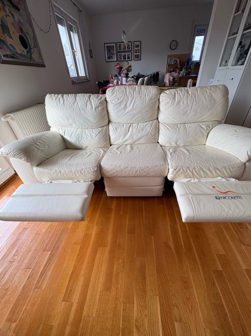 Nicoletti kožni trosjed u vrhunskom stanju. Ima jednostavan i kvalitetan mehanizam za izvlačenje tako da sa svake strane možete biti u polu ležećem položaju.