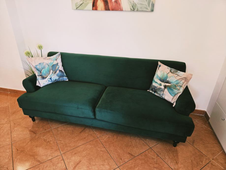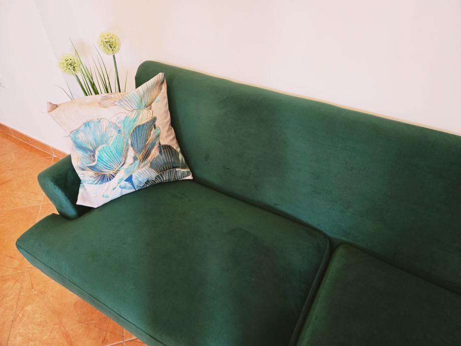 Boja tamno zelena, materijal baršun.