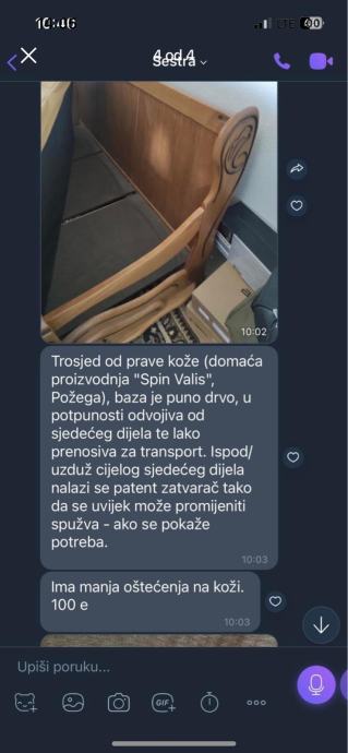 Kožni trosjed Spin Valis,ima oštećenja na kozi. oglas iz usluge zvati na 0976789328