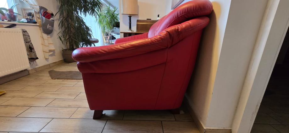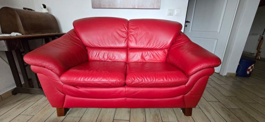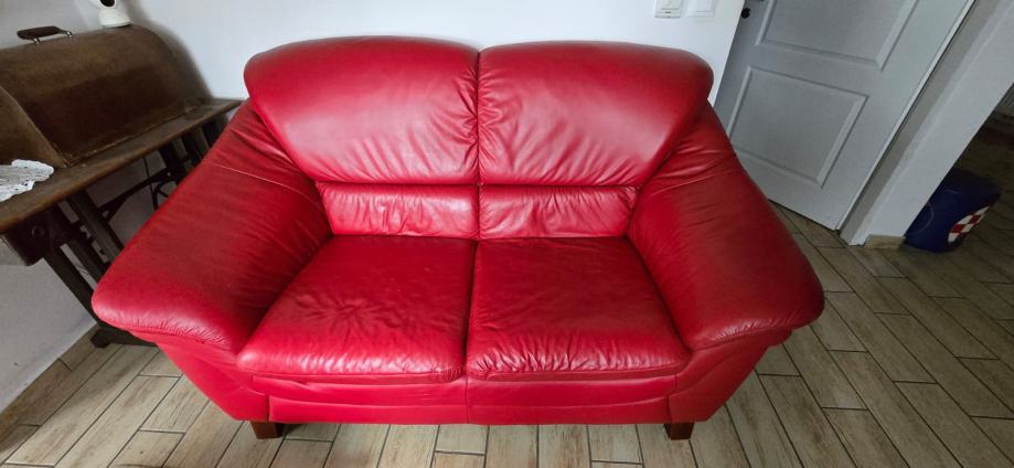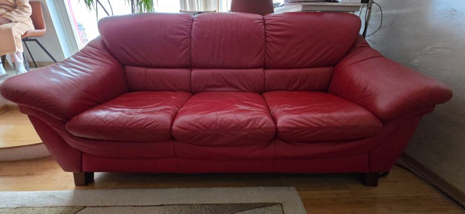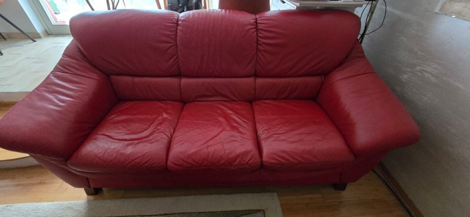 Prodajem malo korišten trosjed i dvosjed s tabureom od prave kože