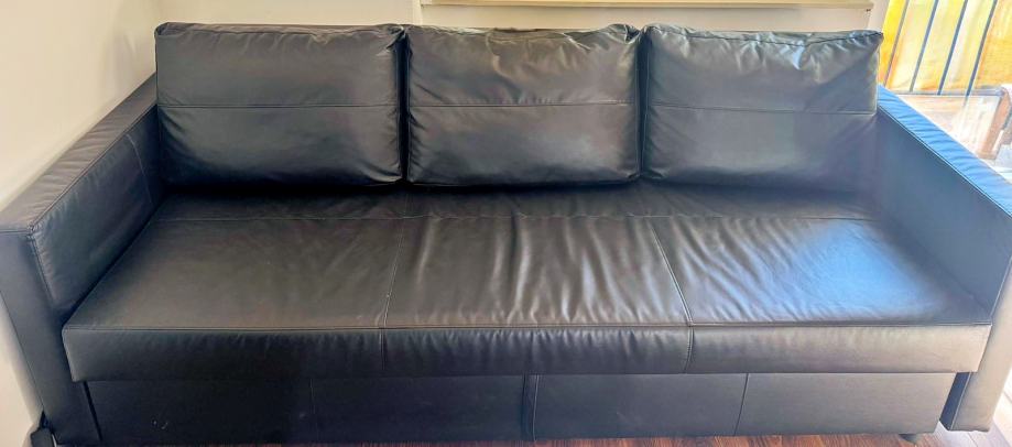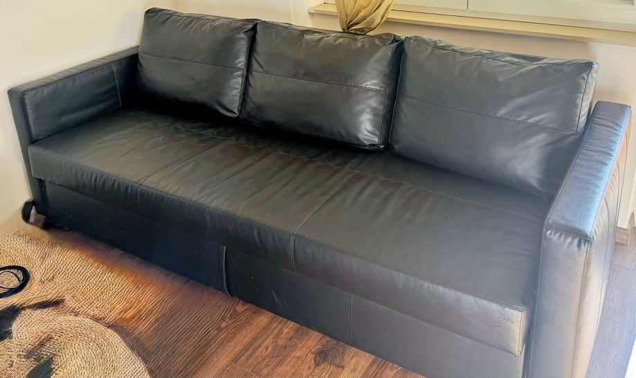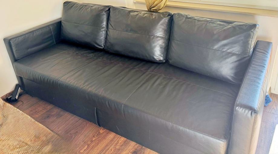 Jako malo korišten trosjed, dimenzije su na slici. Plaćen je 580€, a prodajem ga zbog preuređenja. Može se razvući u veliki krevet. Trosjed se nalazi na trećem katu stambene zgrade. Preuzimanje i odvoz su na kupcu jer nažalost ja nemam tu mogućnost- Trosjed se može preuzeti od 6.1.