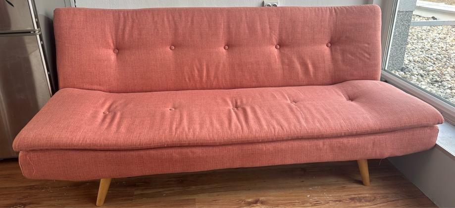 Prodajem trosjed boje breskve u odličnom stanju. Na klik klak mehanizam je otvaranje. 175x75. Prilikom otvaranja širina za spavanje je 100 cm.
