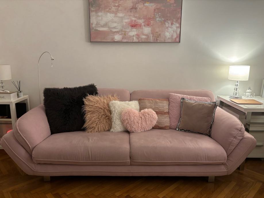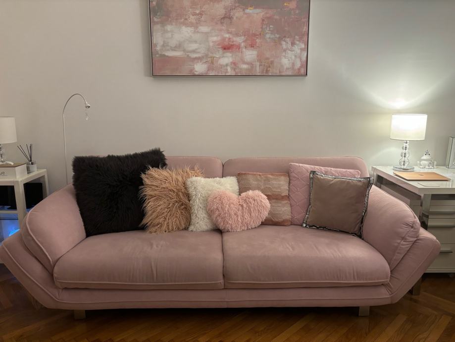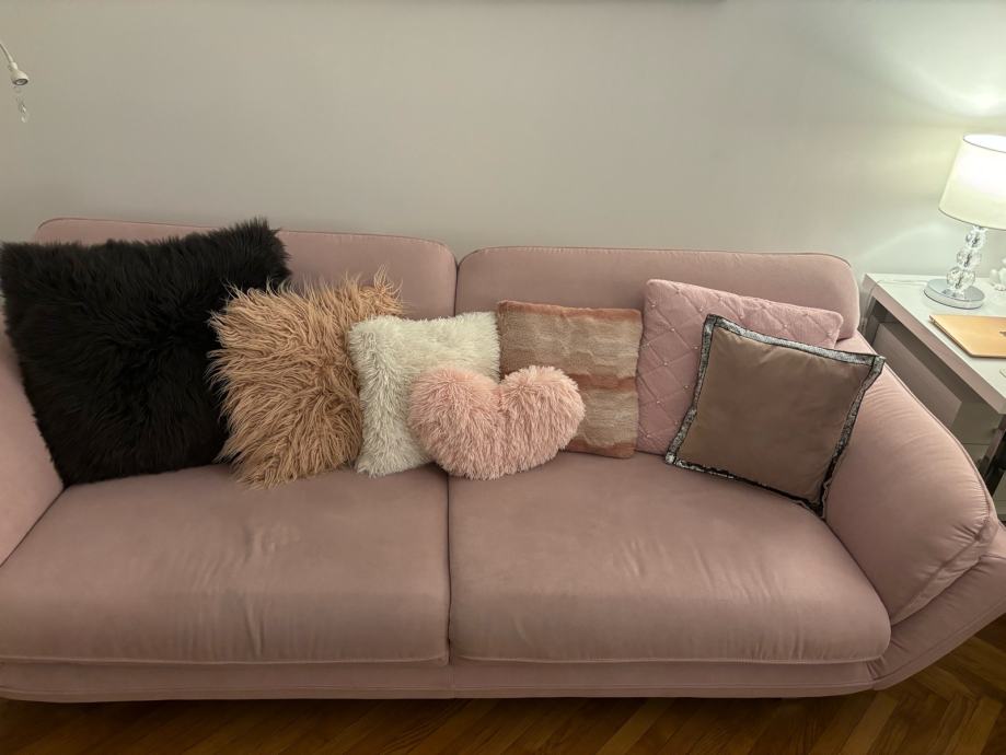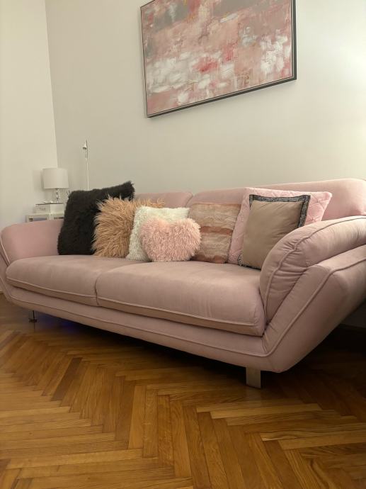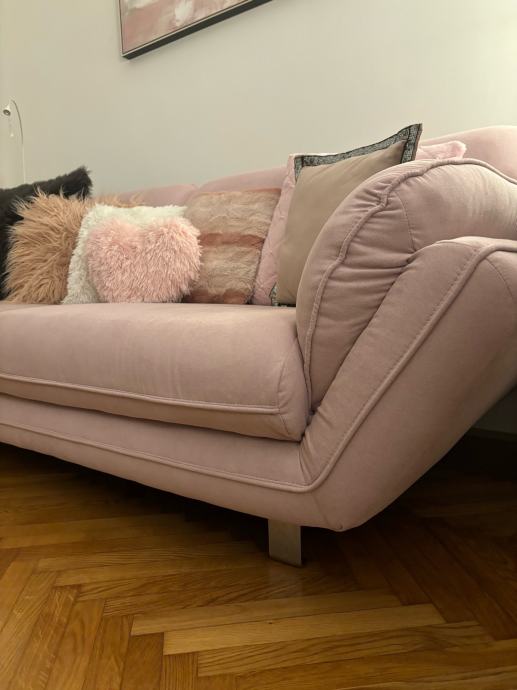 Trosjed roze boje, dimenzija: 250/100(sjedeći dio 64)/87 naslon