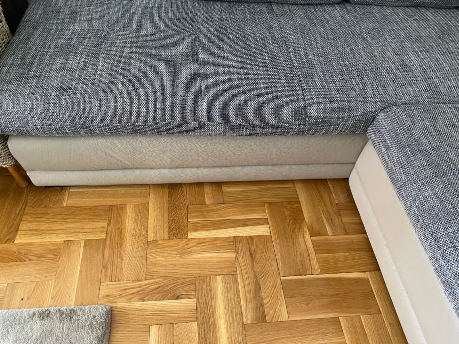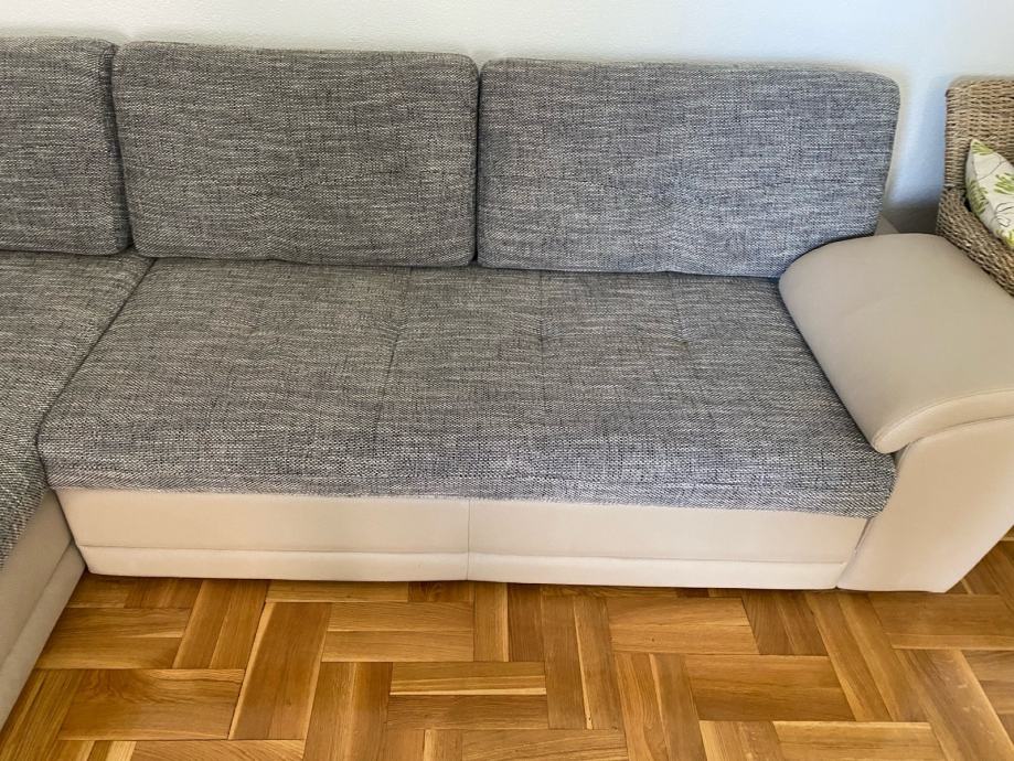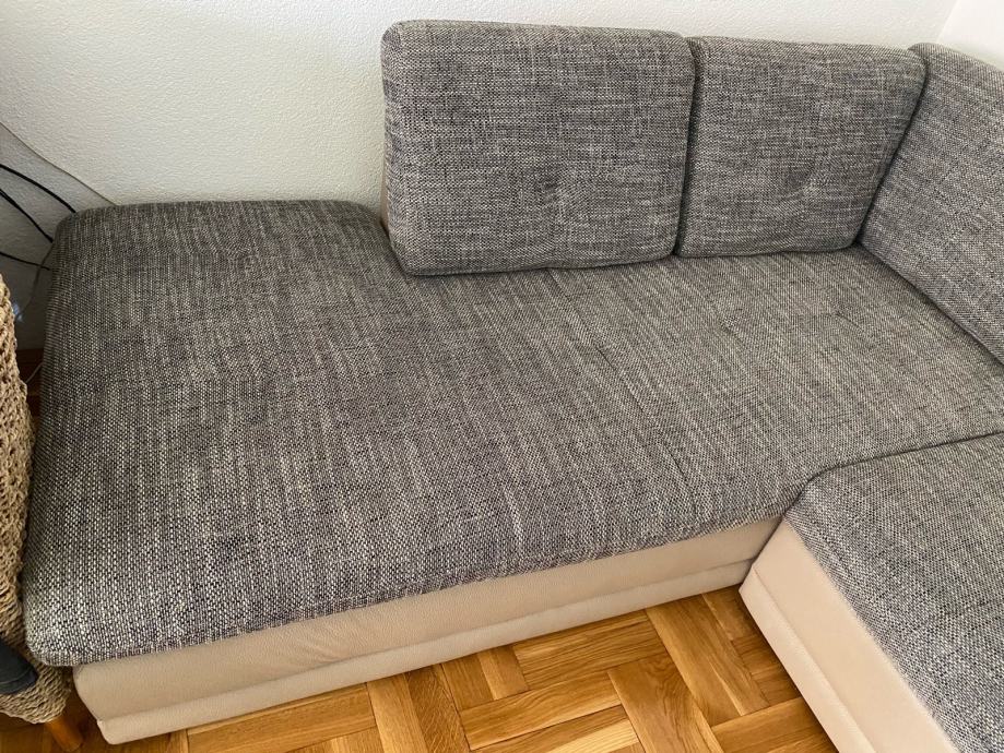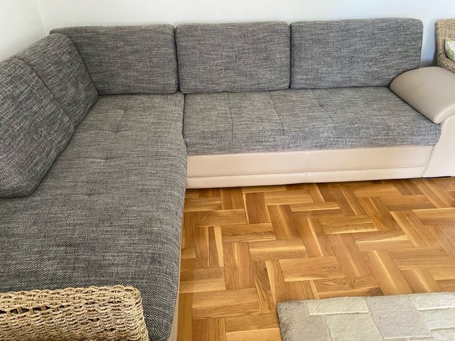 Sjedeca kutna garnitura iz Lesnine, elegantna, očuvana, skoro nova, na lak i jednostavno se pretvori u funkcionalan krevet za 3 osobe.