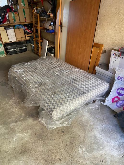 Sofa je u dobrom stanju, korištena samo povremeno. Ima mala oštećenja na tkanini (mrlja u kutu i par mačjih ogrebotina).