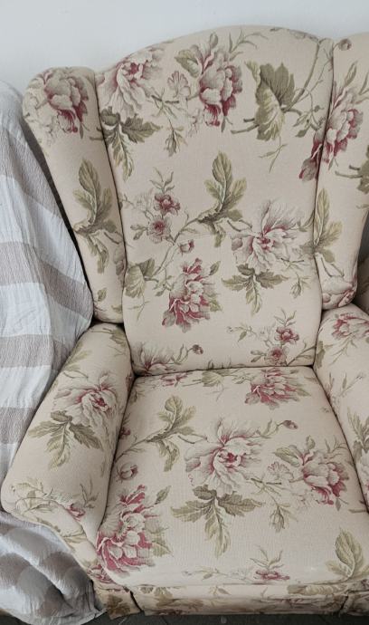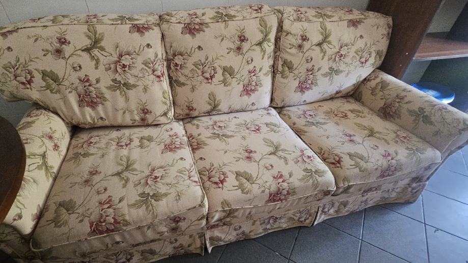Trosjed, 1 široka fotelja i 1 fleksibilna fotelja s mogućnošću podizanja nogu - uščuvano.