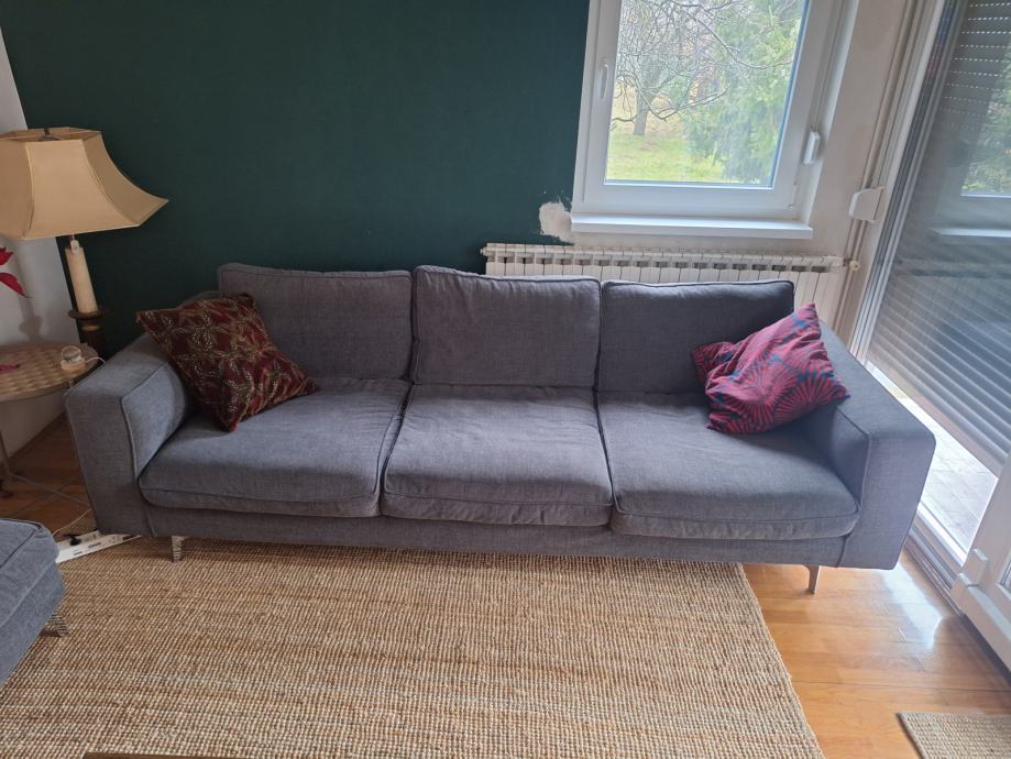 Zbog preuređenja prodajem iznimno udoban i kvalitetan trosjed proizvođača Calligaris kupljen u Meblu prije cca 5 godina. Tkanina je zahvalna za održavanje i čvrsta. Kauč nema oštećenja. Dimenzije kauča su :
