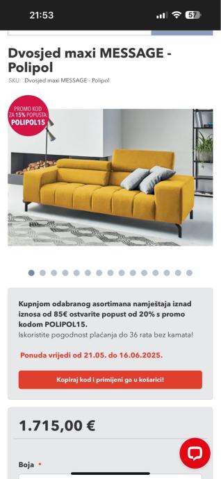SNIŽENO!!! Cijena za oba dijela ( trosjed i dvosjed )!! Prodajem u top stanju bez ikakvih oštećenja trosjed Message Polipol 236x116 cm i dvosjed Message Polipol 211x116 cm, made in Germany, Top kvaliteta, najviša kategorija materijala, novo bez popusta koštalo 3.469,00€ ( bez doplate za materijal koji je skuplji od standardnog ),sve zajedno prodajem vrlo povoljno. Prodaja isključivo u kompletu. Moguće preuzimanje odmah po uplati, moguća prodaja na rate ( pojasnim telefonski ), tel: 098/465-002