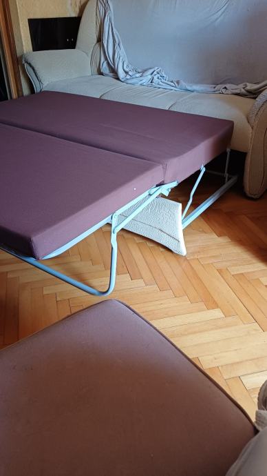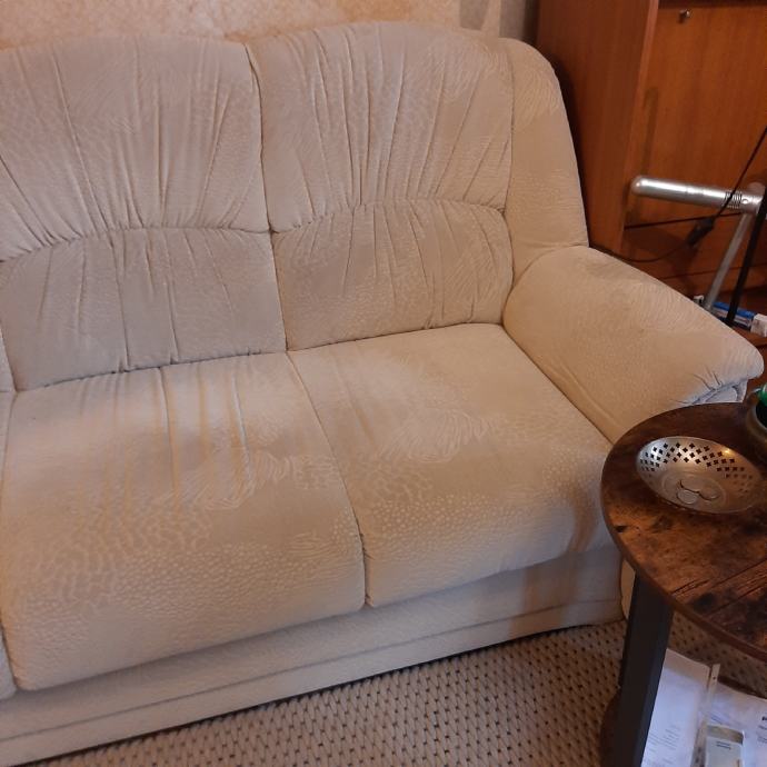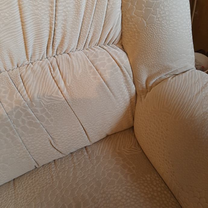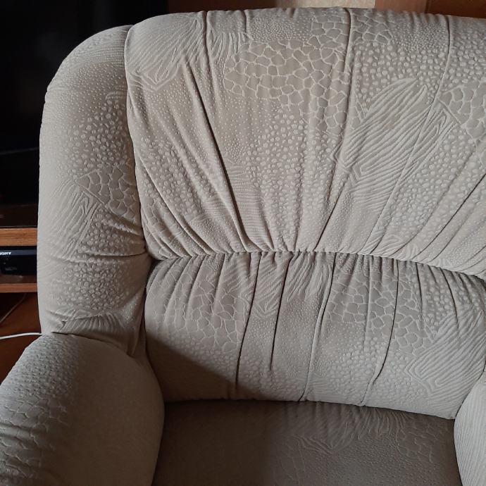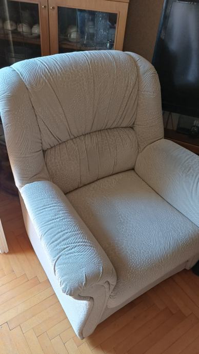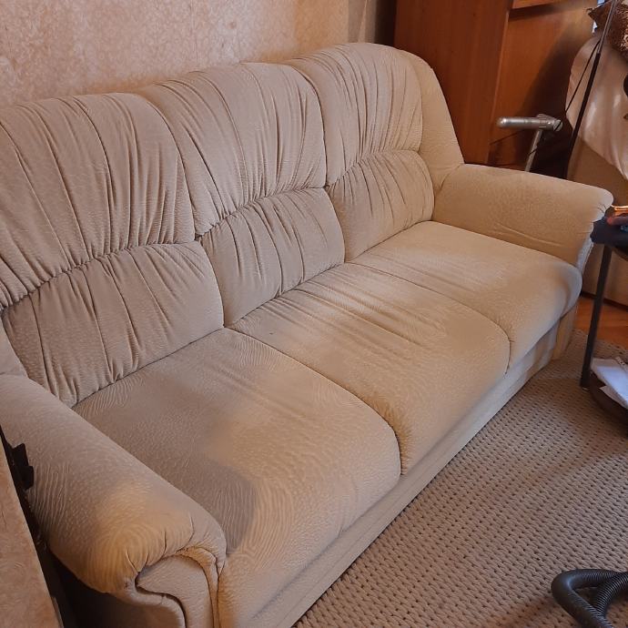 Trosjed na razvlačenje i dvije fotelje,kao novo,obučeno u mikrofibru otpornu na mrlhe,širina trosjeda 195