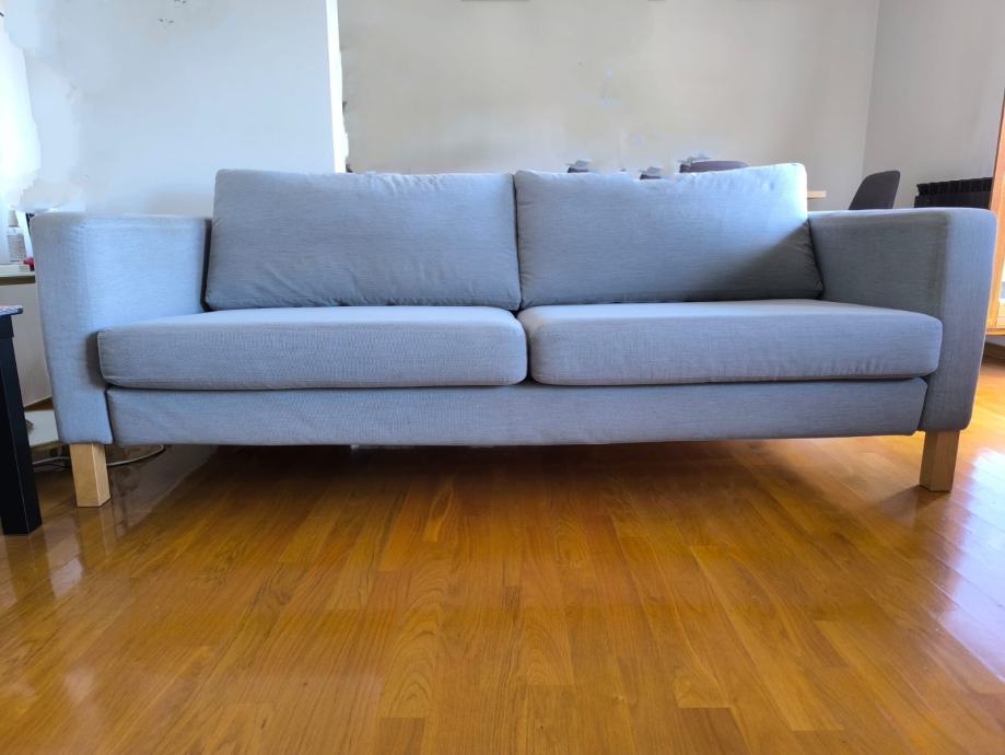 Prodajem sivi Karlstad trosjed u odličnom stanju. Uz njega dolazi potpuno nova nikad koristena presvlaka. Cijena je 100 € i nalazi se na Srednjacima. Po potrebi ga mogu rastaviti radi lakšeg transporta.