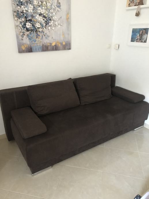 Smeđi trosjed star 3 godine, korišten samo 1 godinu idealan za apartmanski ležaj. Kupljen u Lesnini, neoštecen