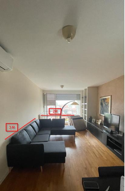 Na slici su postavljene dimenzije, 3m je dužina naslona i 2 m je duža stranica.