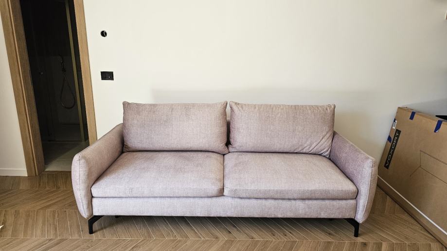 Prodajem nov, nekorišten trosjed na razvlačenje u tekstilu, kupljen u Lesnini – brand “Novel”.