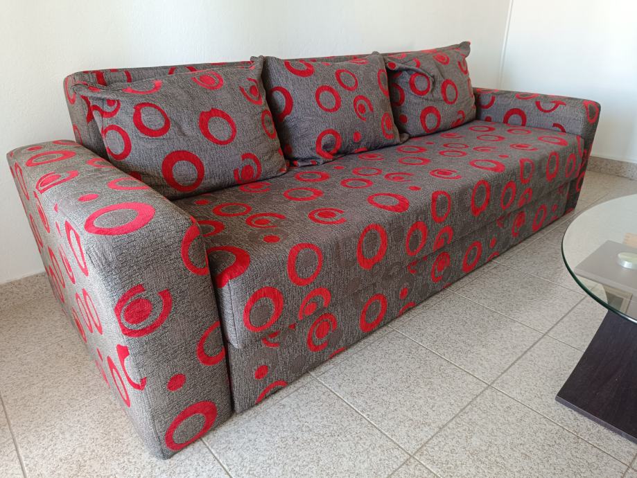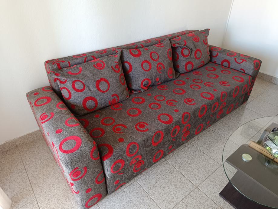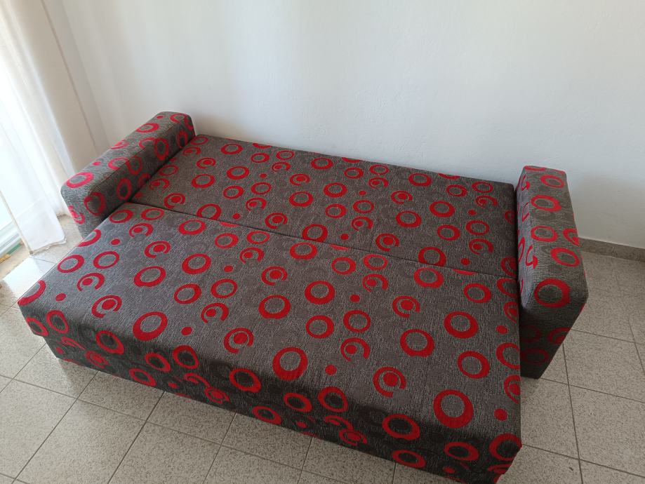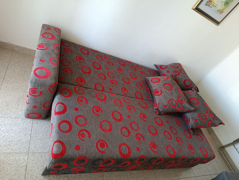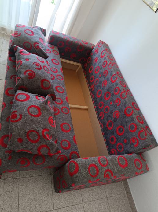 Prodajem trosjed na razvlačenje. Kvalitetna konstrukcija, domaća proizvodnja, bez kompliciranog mehanizma izvlačenja. Super uščuvan, nema nikakvih fleka ili oštećenja niti mirisa. Prodajem radi rekonstrukcije kuće, nemam kud s njim dok traju radovi.