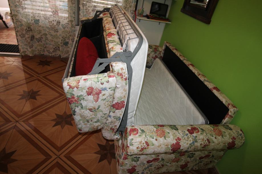 Vrhunski kvalitetan trosjed na razvlačenje širina sa bočnim stranicama 210 cm novo . Trosjed se nalazi u Vodicama dostupan odmah .Telefon 095 8003379 . Lako se razvuče .Sadrži dva boksa za posteljinu i vrhunski mehanizam Njemačke proizvodnje .Garancija 10 godina . Trosjed je ekstra dizajna za ljude sa stilom . Poklon okrugli jastuk bordo boje .