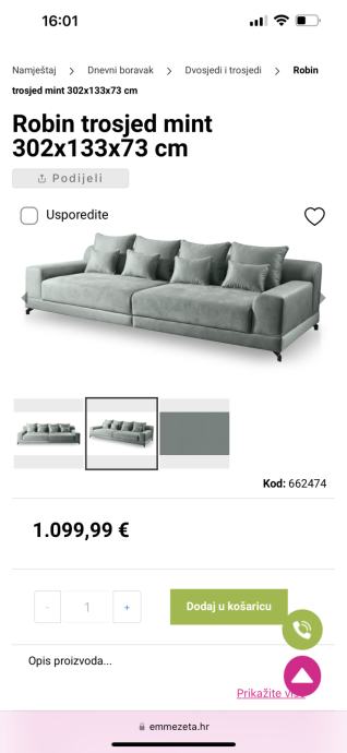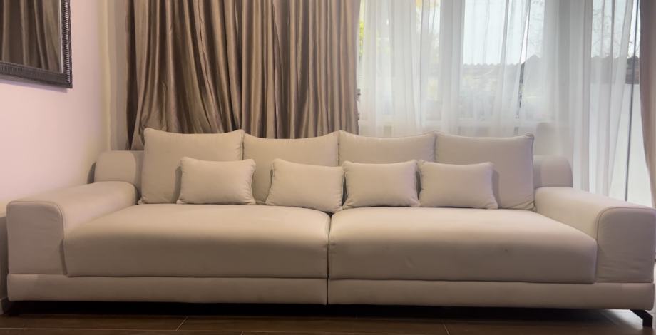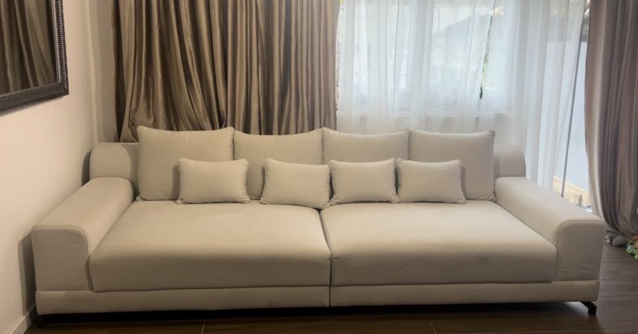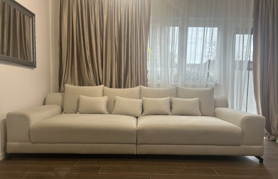 Prekrasan trosjed/sofa kupljen prije par mjeseci ,boja je prljavo bijela kao na zadnjoj slici .