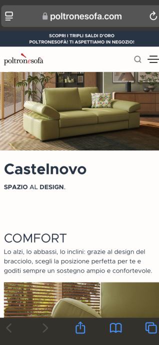 Kvalitetan moderan i lijep sjedez sofa triosjed prava koza kupljen u Italiji Trst www.poltronesofa.com model Castelnovo sve info i slike pogledajte na njihovoj stranici,kupljen na popustu crni petak za 1100e trenutno cijena 2300e cijena koliko i placen a iznos kojeg sam platio od Italije do Medulina na moj trosak,razlog prodaje je taj sto kad isporucen i postavljen u dnevnu sobu vidjeli smo da nam je prevelik,ne koristen novo,