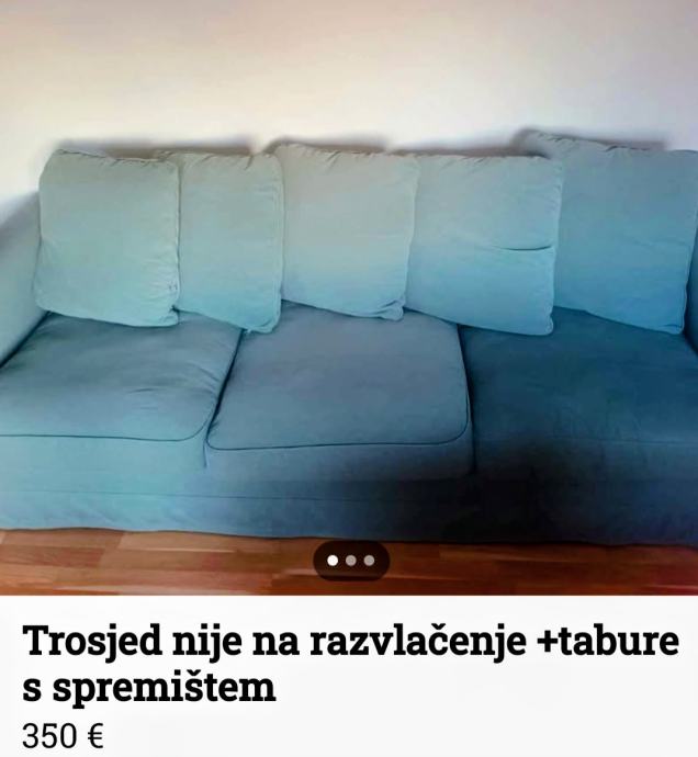 Prodajem trosjed i tabure sa spremistem, koristen ali ocuvan, bez tragova korištenja.Zvati na broj 0911846429.