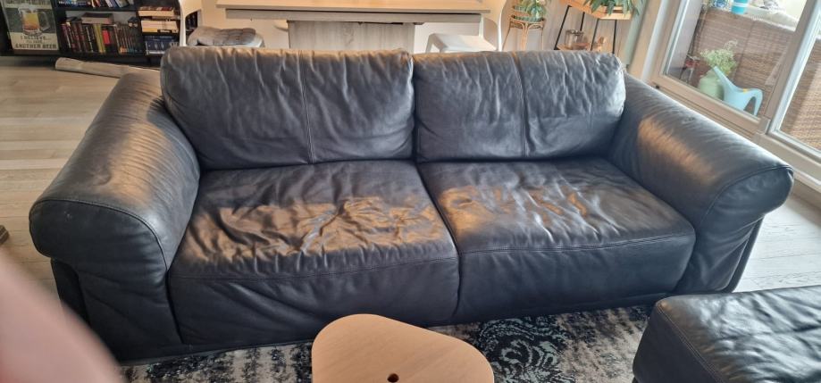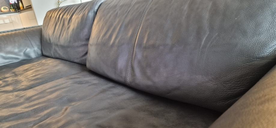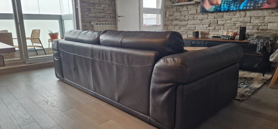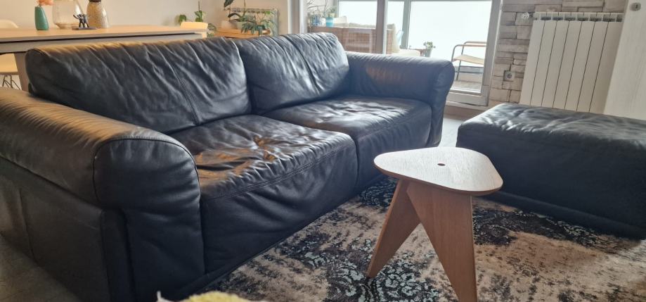 Cijena: 450 eur fiksno. Molim ne zvati i dolaziti ukoliko vam je preskupo.Kožni trosjed i tabure Polo Divani – talijanska kvaliteta, prirodna koža, Made in Italy
