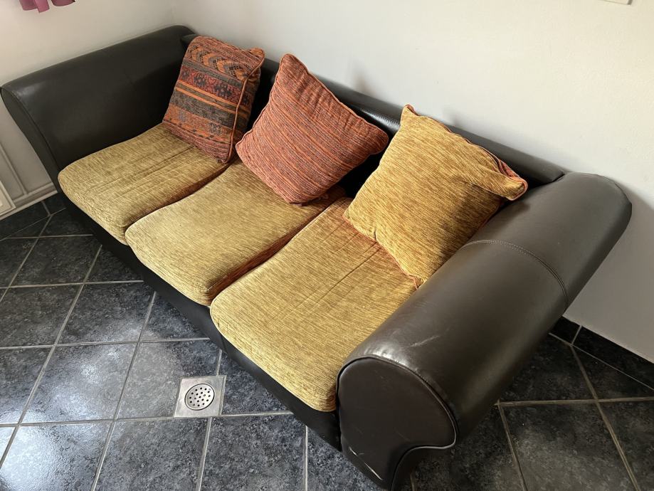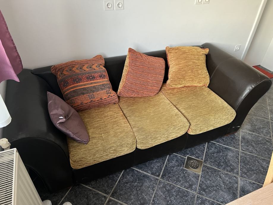 Trosjed kojem su stranice od umjetne kože. Djelovi sa spužvom su od tekstila. Moguca dostava.