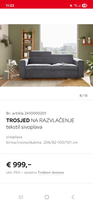 Sa stranice Lesnine (https://www.xxxlesnina.hr/p/venda-trosjed-na-razvlacenje-tekstil-sivoplava-002410000201):