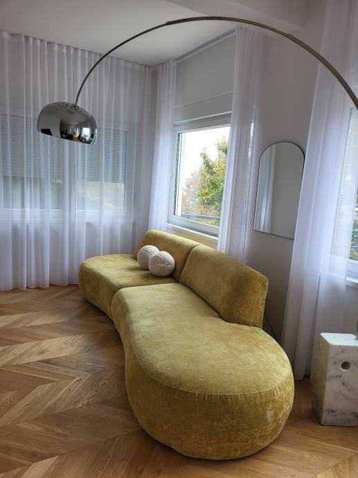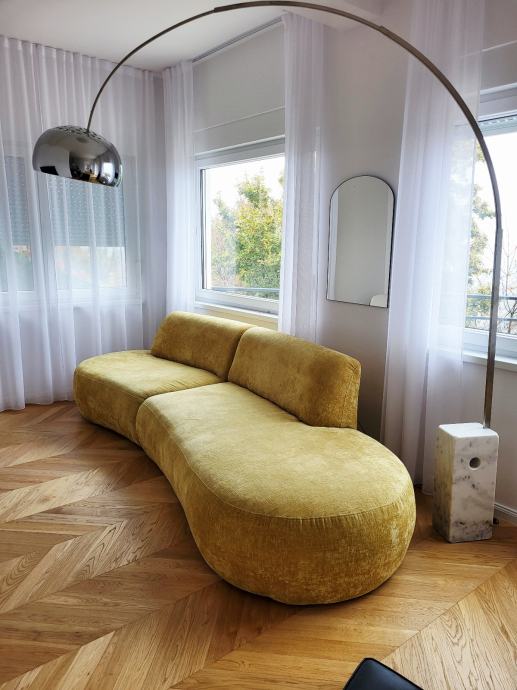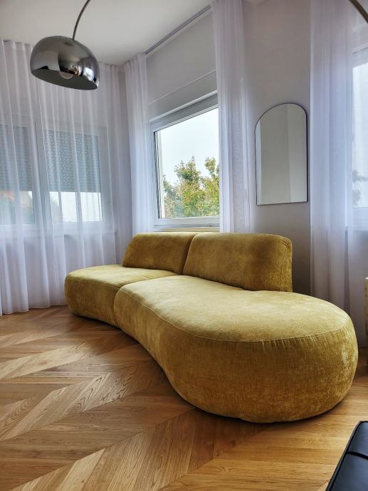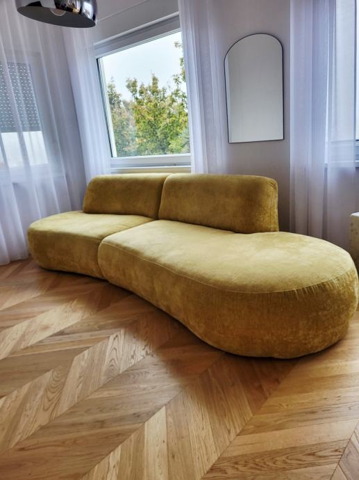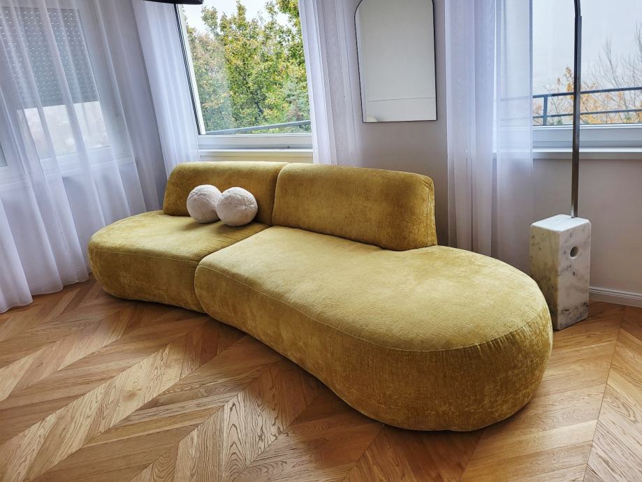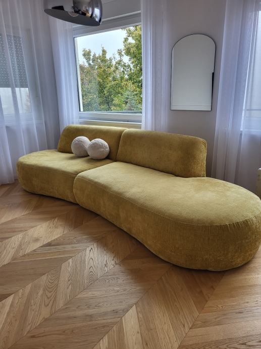 Prodajemo trosjed, zaobljen, žuta boja, star 7 mjeseci. Dužina: 330cm