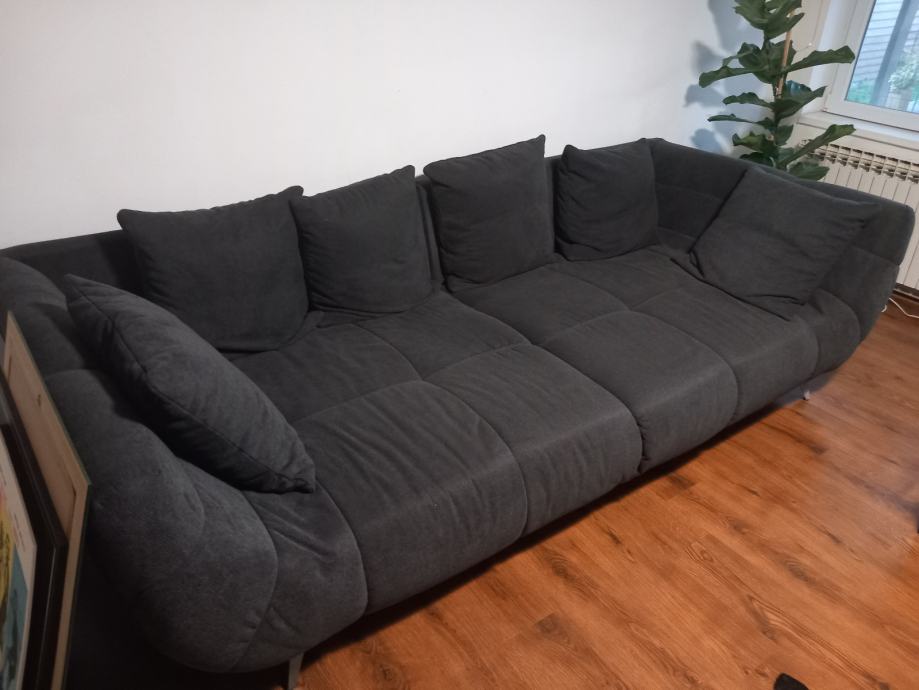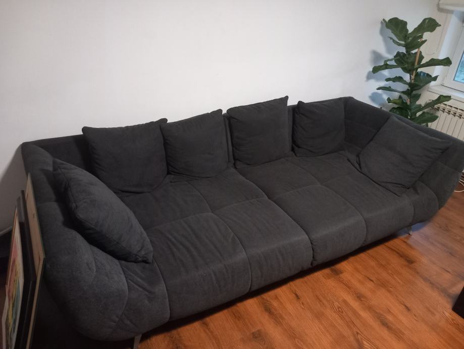 Dimenzije su 300 duljina, 79 visina i 133 dubina. Jastuci ukljuceni u cijenu. Nalazimo se u Osijeku.