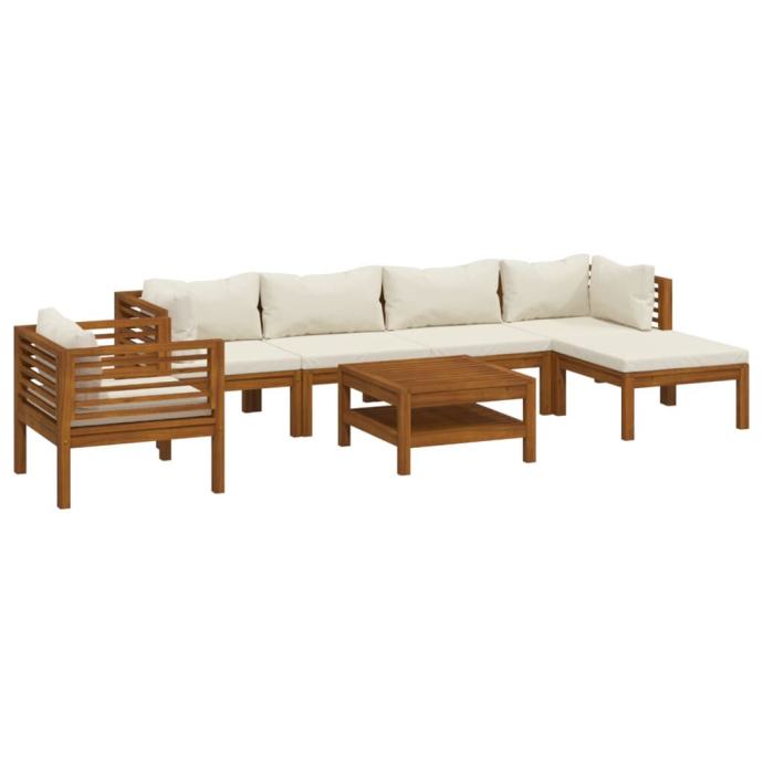 vidaXL 7-dijelna vrtna garnitura s krem jastucima masivno(3086930)
