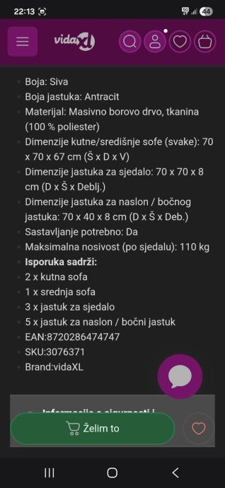 Ne odgovara dimenzijom za balkon za koji je kupljen, 210cm dužina vrtne garniture.