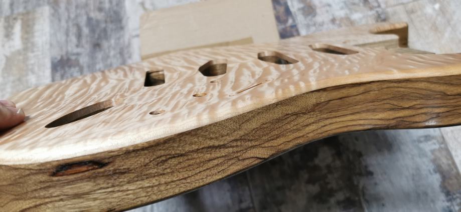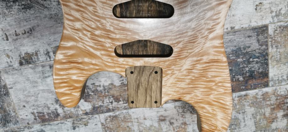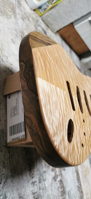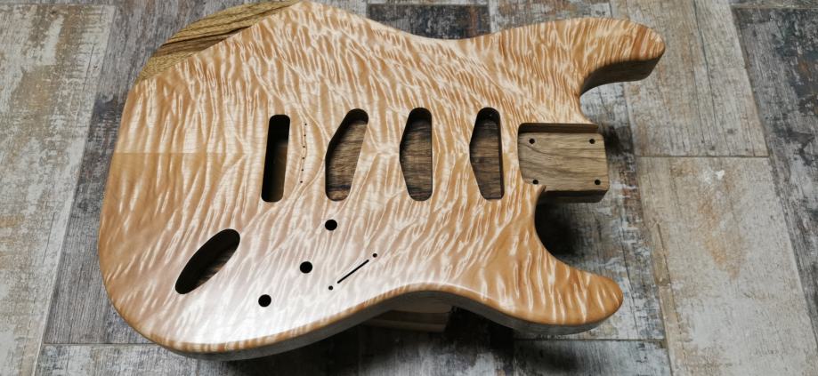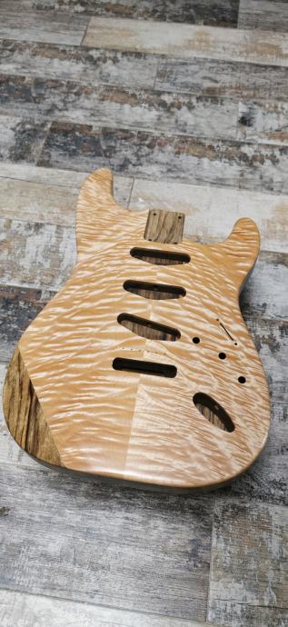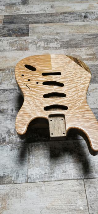 Tjelo je novo made in usa vrh kvalitete drveta chambered Quilted Maple Top On 1pc Black Limba oil finish Fender Stratocaster neck pocket.cijena je fixna označene rupe za 52.5 bridge bez zamijena