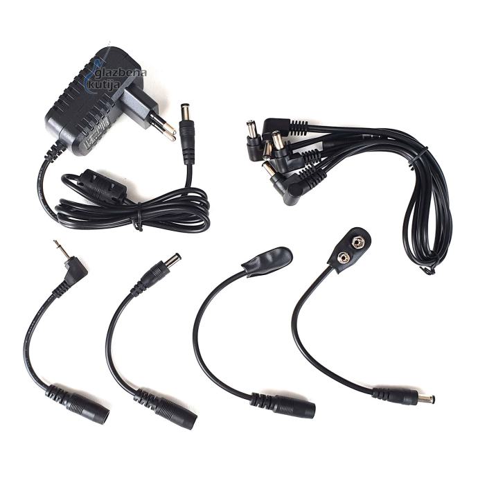 Sa CP-07 sa snažnim izlazom do 1000mA, možete napajati cijeli pedalboard, uključujući nekoliko digitalnih pedala. Jedna od posebnih značajki je filter u izlaznom kabelu koji će smanjiti visokofrekventno zračenje i buku. To je jedan od najtiših izvora napajanja na tržištu. Standardni Combo paket od 9V napajanja sastoji se od 9V DC adaptera napajanja. Multi-Plug 8 kabeli, koji se mogu koristiti za napajanje za pedale Line 6, Digitech, RAT i EH, itd. To vam omogućuje korištenje više od 99% gitarskih efekt pedala.