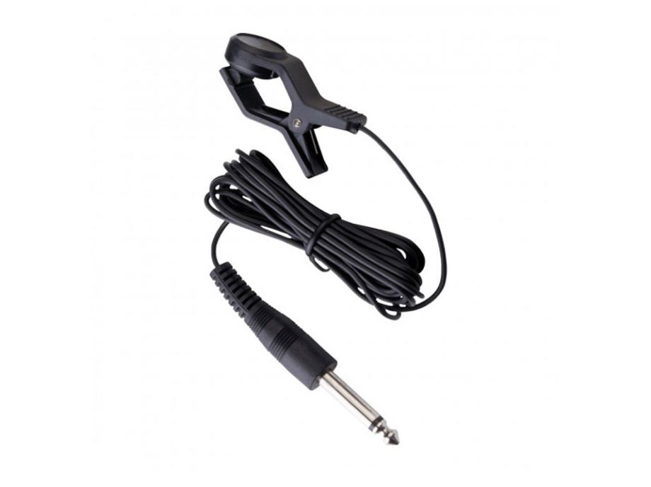 Clip Pickup/Contact Microphone for connecting to a tuner Allows tuning of acoustic instruments via vibration transmission. Designed for the direct picking up at the instrument Allows tuning also in noisy environments. The clip is covered with a soft, non-slip rubber-layer, so the pickup clamps well without scratching the instrument.