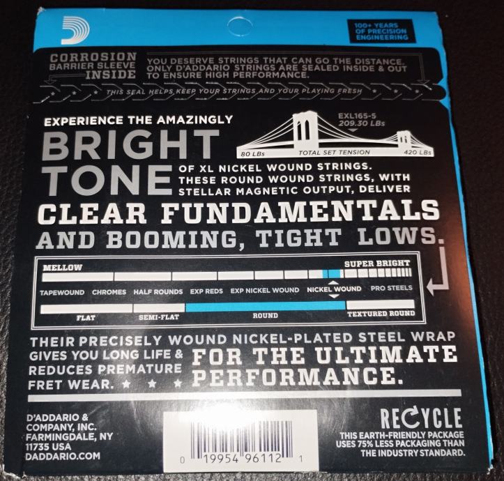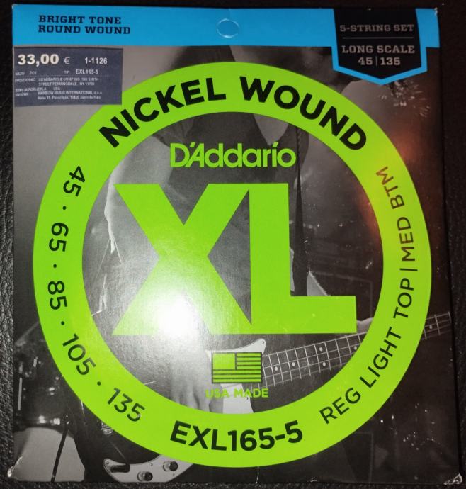 DAddario žice za bas gitaru - 5 strings set - 45/135 Nickel wound