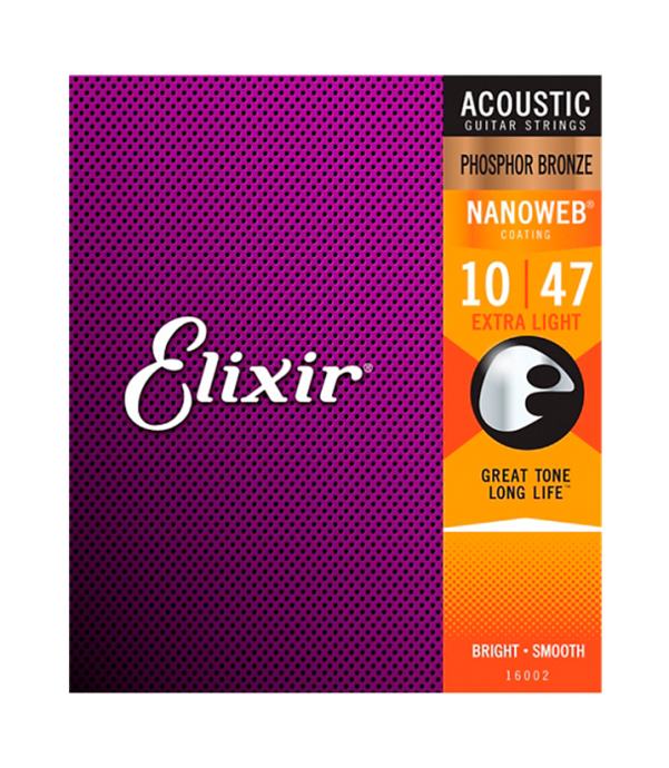 Elixir Phosphor Bronze žice za akustičnu gitaru sa NANOWEB zaštitom daju pravu toplinu phosphor bronze žica te produženi vijek trajanja od 3 do 5 puta. Najprodavanije žice za akustiku u SAD-u. Debljine u setu: .010, .014, .023, .030, .039, .047.