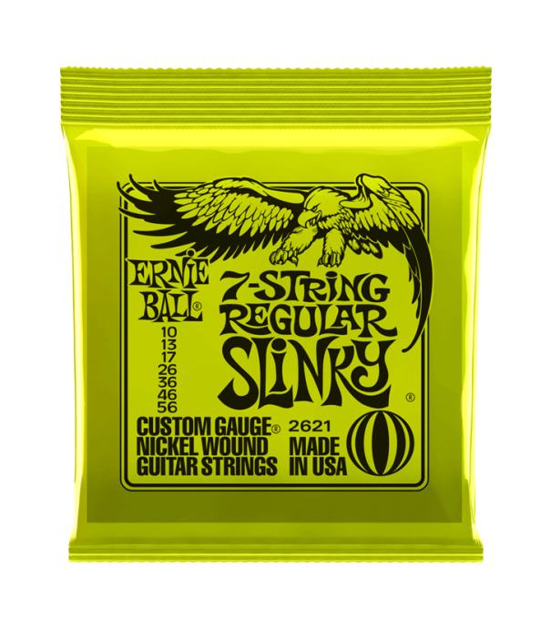 Ernie Ball 7 String Regular Slinky Strings su svjetski poznate žice vrhunskog tona. Ove žice su precizno izrađene prema najvišim standardima i po točnim specifikacijama da osiguraju konzistentnost, optimalne performanse i dugovječnost. Ernie Ball 7 String Regular Slinky žice su napravljene od niklovanog čelika omotanog oko heksagonalno oblikovane čelične jezgre. Žice bez namotaja su napravljene od posebno temperiranog visoko karbonskog čelika te proizvode dobro balansirani ton za vašu gitaru.